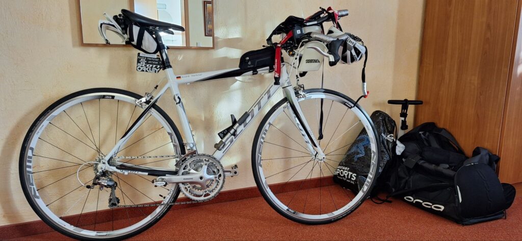 Kurz nach 14 Uhr angekommen und im Biergarten sehr lecker zum Mittag gegessen, danach zum Strandbad ein Tretboot ausgeliehen und das tolle Wetter genossen. Wassertemperatur allerdings mit 20°C für mich zu kalt. Danach noch einen Spaziergang durch den Ort und die Startunterlagen abgeholt. Ab zum Hotel und für eine Runde aufs Rennrad. Zurück und den Abend ausklingen lassen.