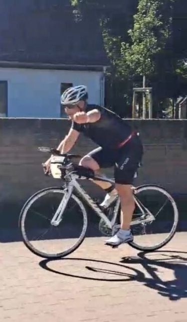 Zeit war bestens und im guten Mittelfeld kam ich aus dem Wasser, in der Wechselzone angekommen quälte ich mich aus dem Neopren und trotzdem war ich nach ca. 5 Minuten auf dem Rad. Temperaturen top und es lief gut, oftmals musste die Gegenfahrbahn nutzen, soll heißen das es einige Überholmanöver zu verzeichnen gab. 2. Runden wie am Schnürchen abgespult und dank der Veränderung meiner Aerobars, diese auch zu über 70% genutzt.