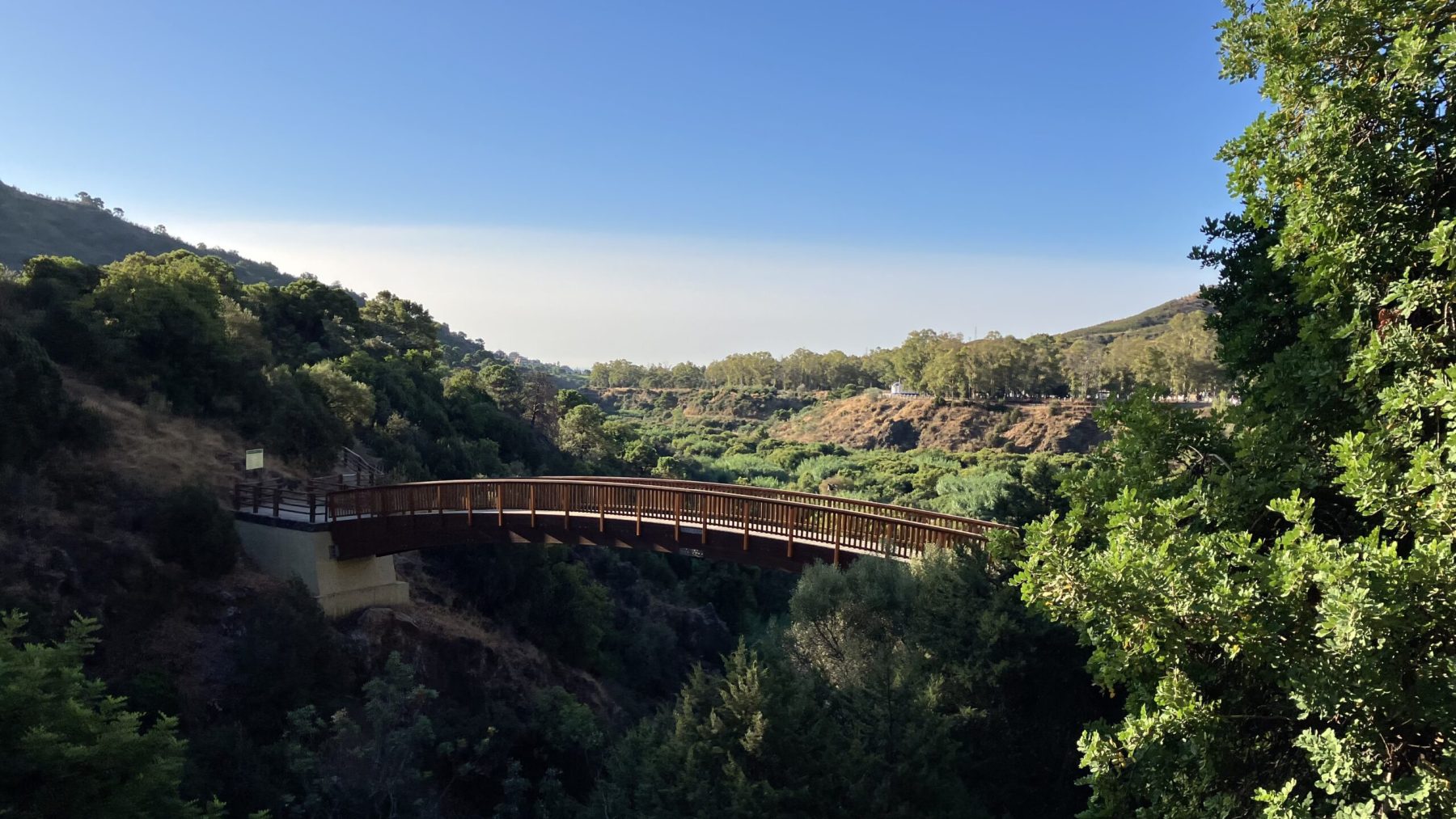 Nach den 5000 Höhenmetern vom Vortag beschloss ich, mit zwei Uhren laufen zu gehen. Links meine Apple Watch, rechts die Fénix 5. Die ersten 1,5 Kilometer ging es leicht bergab, eine Wohltat am morgen nach dem Sprungfestival vom Vortag. Dann kamen wir an die Brücke und rüber ging es. Was für ein phantastischer Ausblick auf den Canyon vom Vortag. Ein toller Trail mit einem kleinen Bach, ich denke die Bilder sprechen für sich.