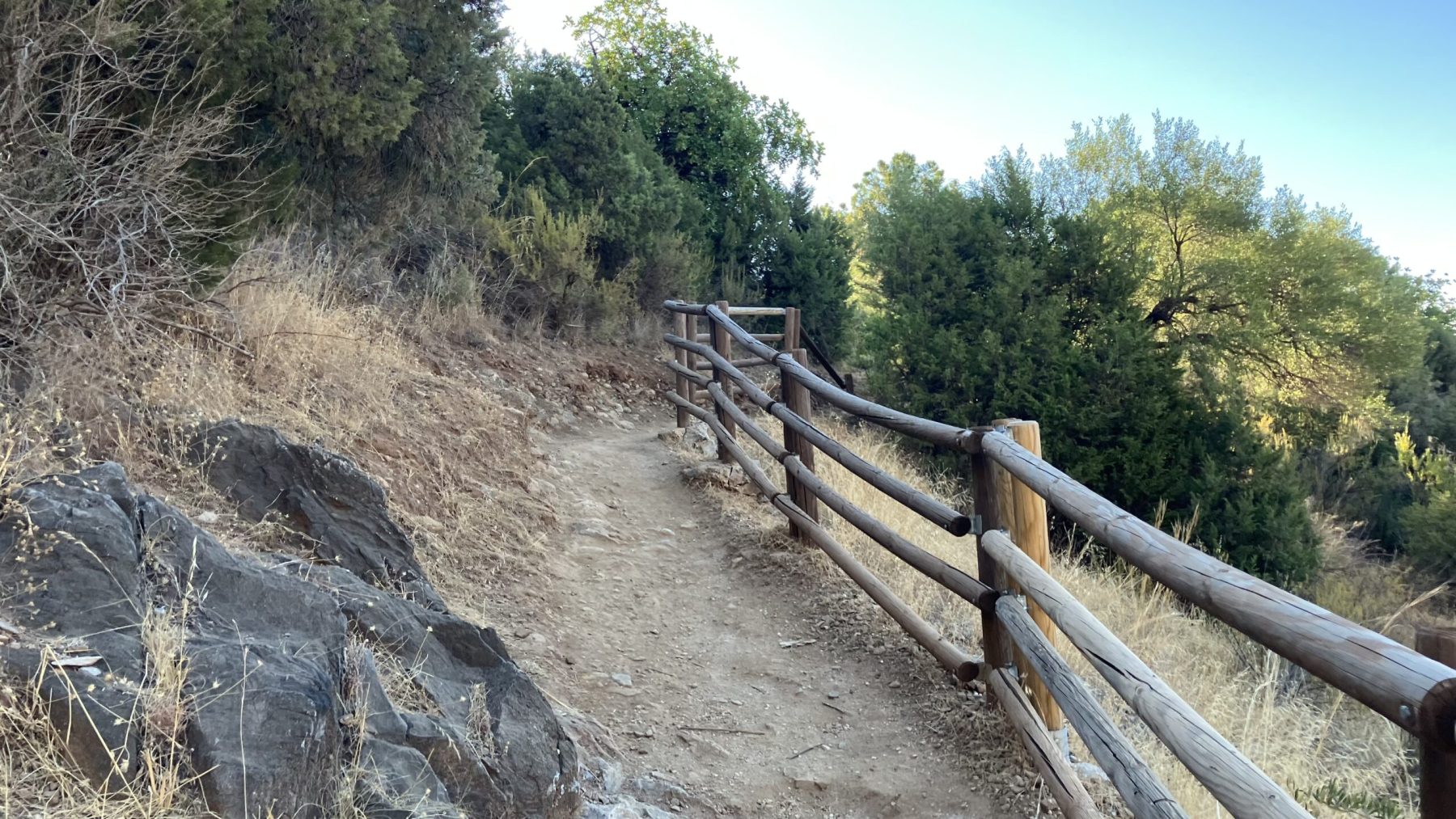 Nach den 5000 Höhenmetern vom Vortag beschloss ich, mit zwei Uhren laufen zu gehen. Links meine Apple Watch, rechts die Fénix 5. Die ersten 1,5 Kilometer ging es leicht bergab, eine Wohltat am morgen nach dem Sprungfestival vom Vortag. Dann kamen wir an die Brücke und rüber ging es. Was für ein phantastischer Ausblick auf den Canyon vom Vortag. Ein toller Trail mit einem kleinen Bach, ich denke die Bilder sprechen für sich.